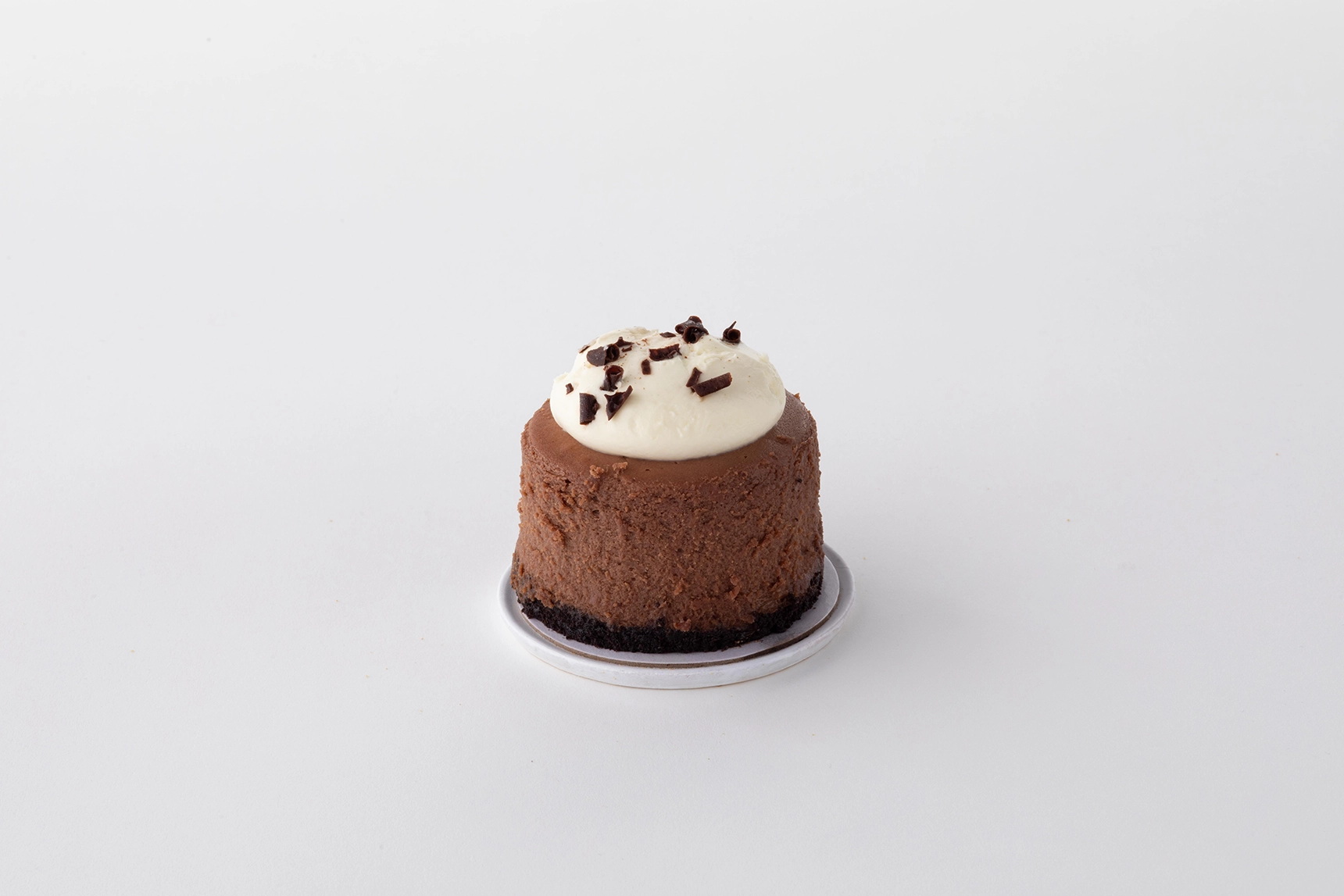 Çikolatalı bisküvi tabanlı çikolatalı cheesecake üzerine çırpılmış krema ve rende çikolata.